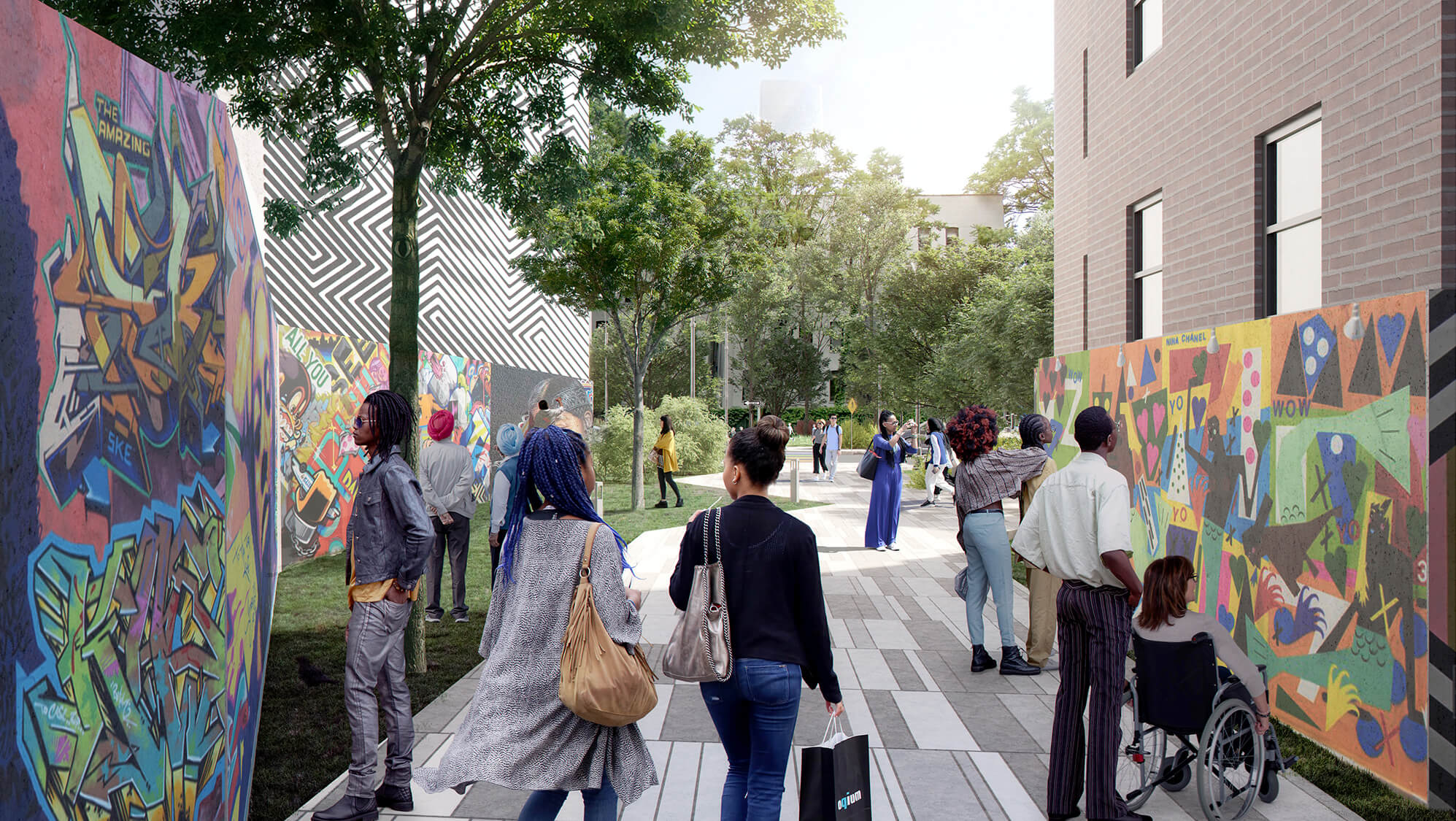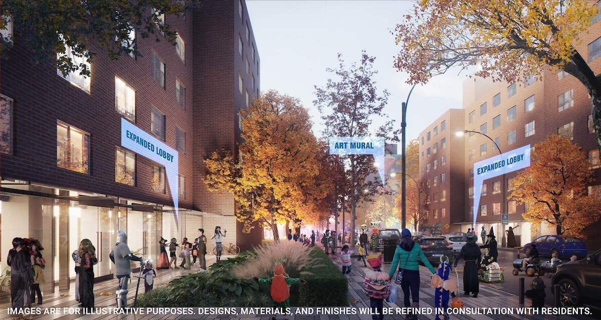 The design shows street upgrades and spaces for public art. (Courtesy NYCHA)