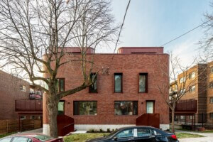 _naturehumaine crafts a curved brick facade for a duplex in Montreal