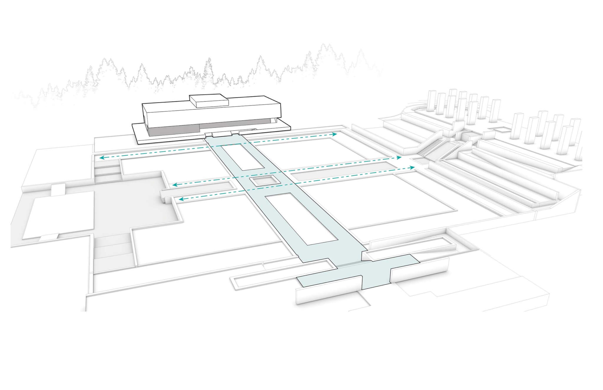 The Diwan pavilion is located on the edge of the garden, aligned symmetrically with the axes of the central court. Functionally, the building will provide an event space as well as a rooftop terrace overlooking the garden. In Punjabi, the term Diwan designates an event or meeting space.