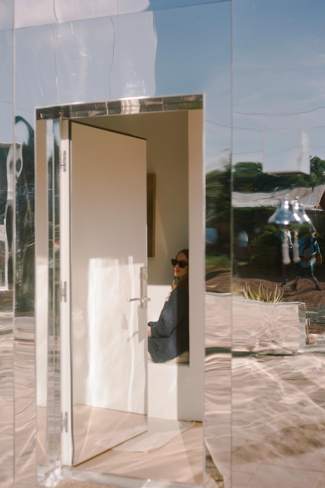 The show is consistently filtered through variegated “windows:” peepholes, doorways, windows, mirrors, phone screens, televisions, and most definitively through the ostentatious facades at the heart of the show. The Siegels’ net-zero homes are clad in reflective glass laminated with a photovoltaic profile and are fully insulated to avoid thermal bridging. (“Like a thermos!” Whitney repeats several times, with a forced bleached smile.)